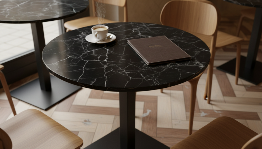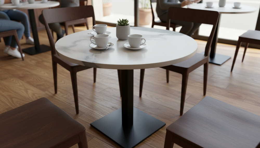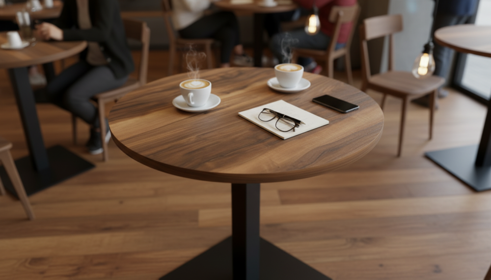 Квадратные, круглые, прямоугольные столешницы HPL. Это ламинат высокого давления. Покрытие МДФ изготавливаеся методом сухого прессования мелкой древесной стружки.